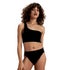 Our solid logo elastic hi wasit bottom is a sure fire winner for style and versatility. Features double strap logo elastic hit on side, high leg cut and cheeky coverage.