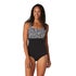 Women's Printed Colourblock Square Neck Adjustable Strap One Piece Swimsuit - Black | Size 12