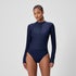 Get ready for active swims and open-water activities wearing the Long Sleeve Zip Rashguard from our new Open Water range. Designed for active comfort, it’s made from flexible Endurasoft fabric with four-way stretch, plus chlorine and pilling resistance for lasting durability. UPF40+ offers protection, while a front zipper pull with zipper garage ensures a chafe-free fit. Body made of 82% recycled polyester, 18% Creora® HighClo™ elastane.