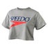 License to chill. Lounge around the pool or at home with this cropped t-shirt, featuring an oversized logo and soft texture.